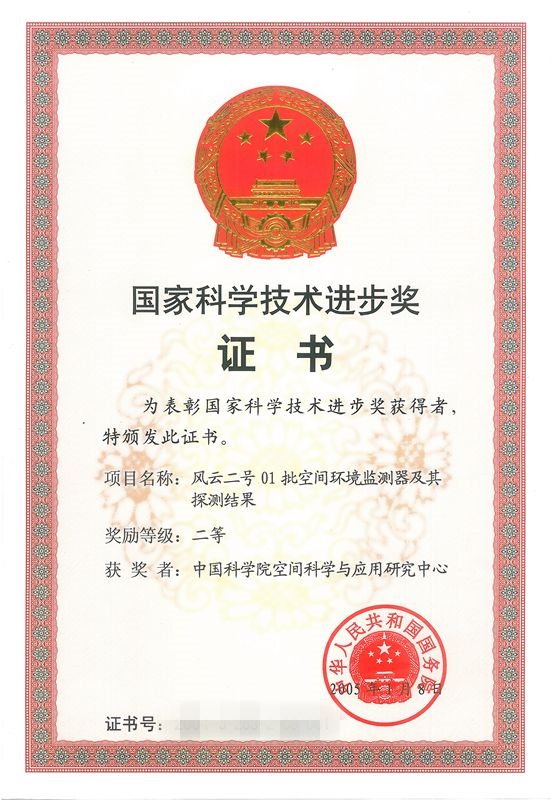 • 国家科学技术进步二等奖(2005.01)—风云二号 01批空间环境监测器及其探测结果