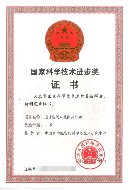 • 国家科学技术进步一等奖(2010.11)—地球空间双星探测计划