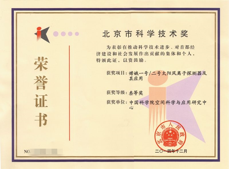 北京市科学技术三等奖(2014.12)—嫦娥一号/二号太阳风离子探测器及其应用