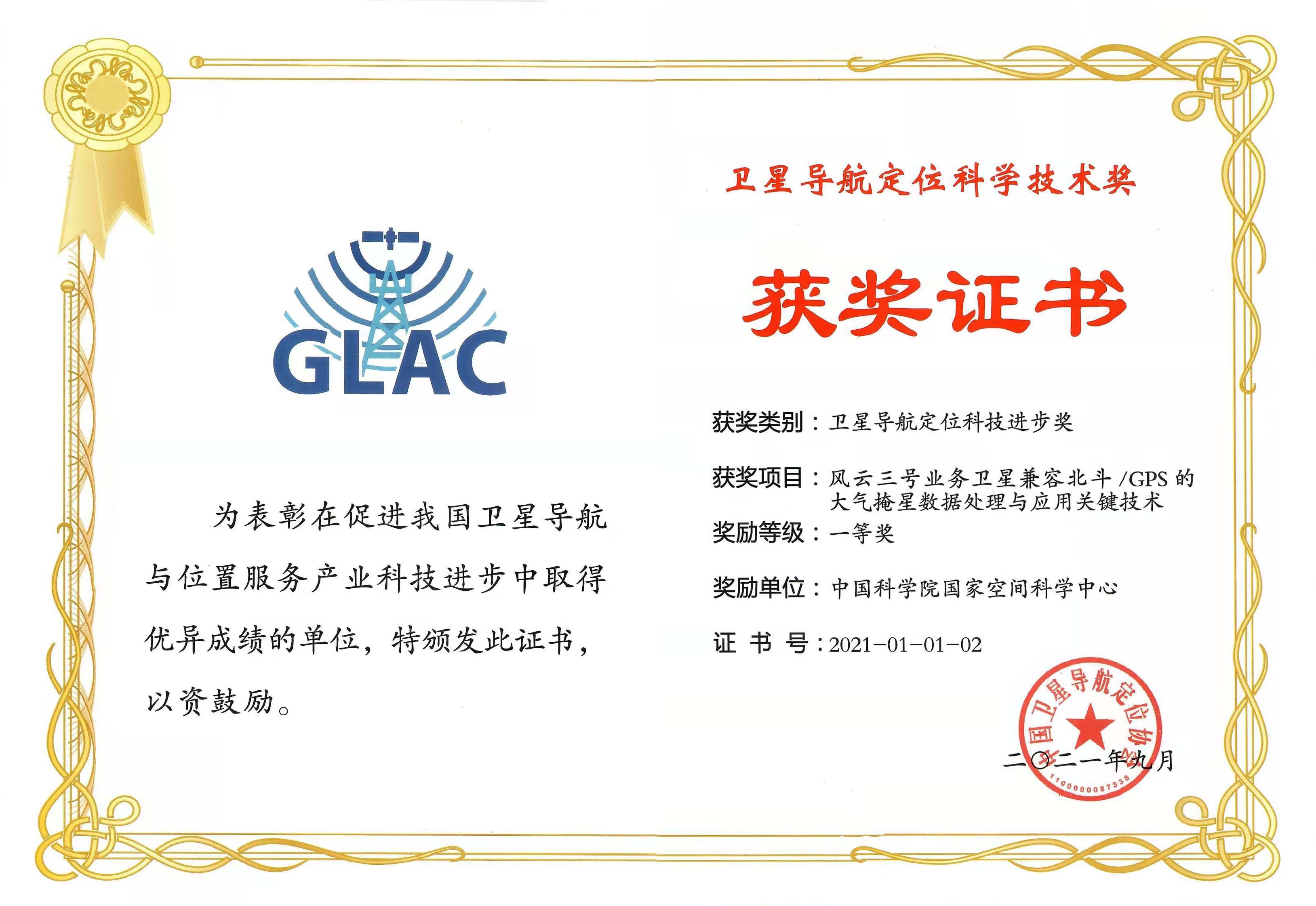 卫星导航定位科技进步奖(2021.09)—风云三号业务卫星兼容北斗/GPS的大气掩星数据处理与应用关键技术