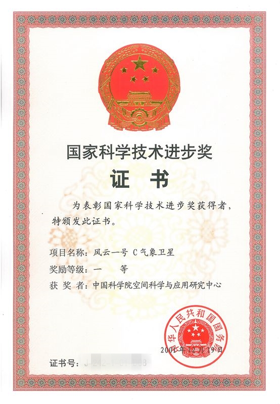 国家科学技术进步一等奖(2001.12)—风云一号 C气象卫星