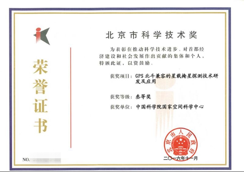 北京市科学技术三等奖(2016.11)—GPS北斗兼容的星载掩星探测技术研发及应用